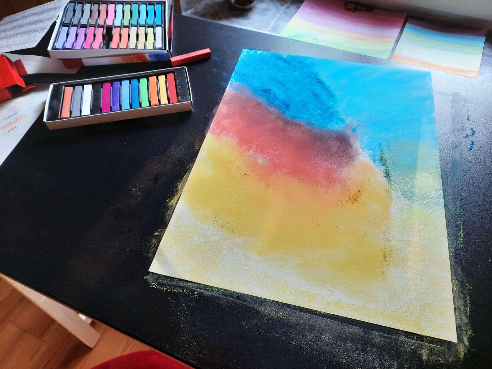 – peinture thérapeutique humide sur humide (Dr Hauschka), – peinture gouache, acrylique…, – dessin (pastels, crayons,…), – collages, – musique : instruments et voix, – mouvements dansés…