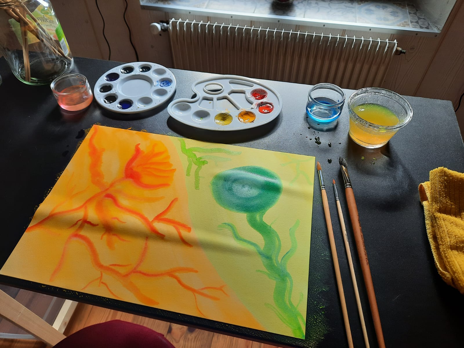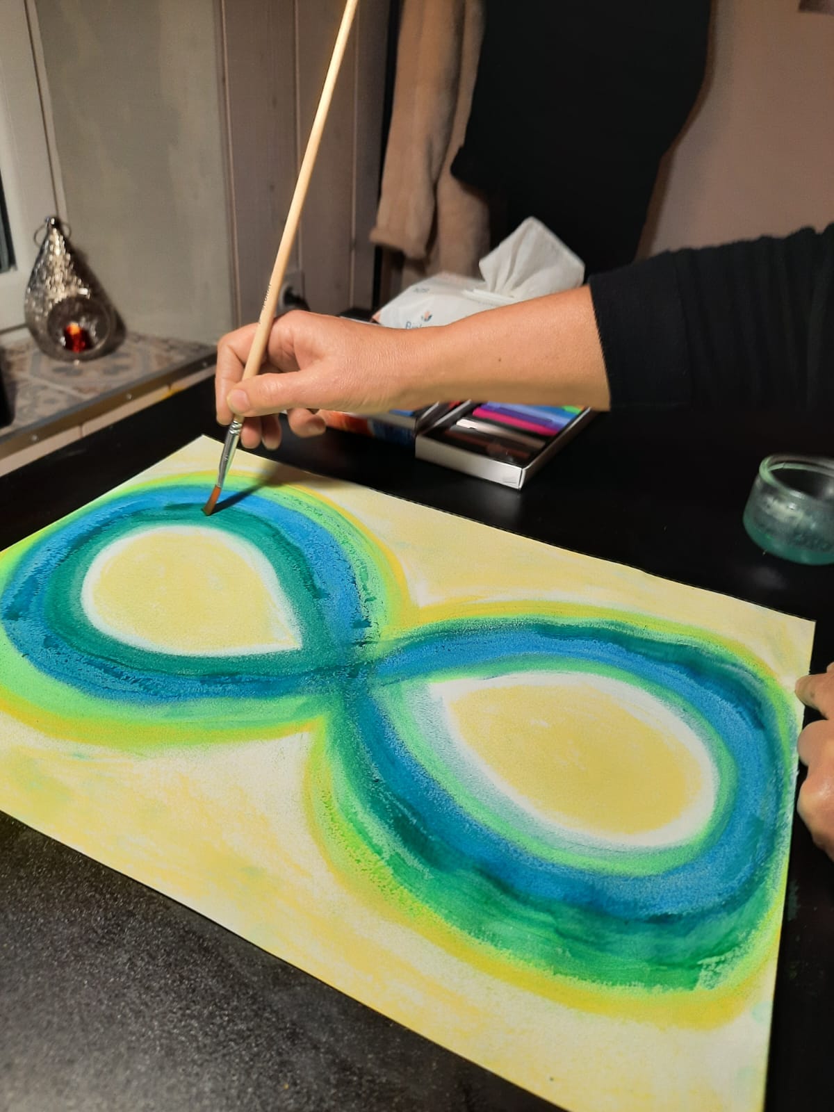 L’Art-Thérapie est un moyen d’expression de soi, une forme de soin qui s’appuie sur la création artistique (peinture, modelage, collage, dessin, musique, écriture, chant, danse, théâtre…). Sans objectif final de rendu.
